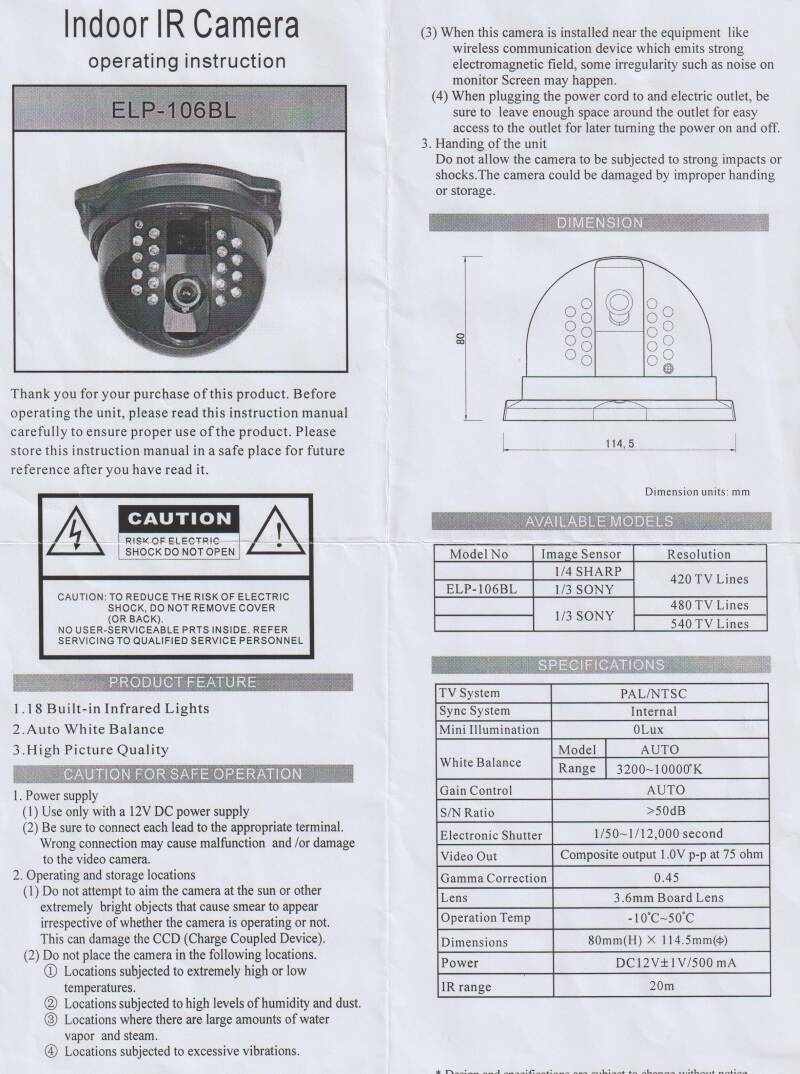 Dome kamera for innendørs montering . 18 IR LED med avstand 20m. Solid kamera. Leveres med 20m kabel for overføring av bilde og strømforsyning. For tekniske opplysninger se lenger ned på siden.