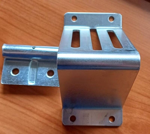 Solid toppbrakett med løpehjulsfeste til industriport. Bolter til løpehjulsfeste følger med.
