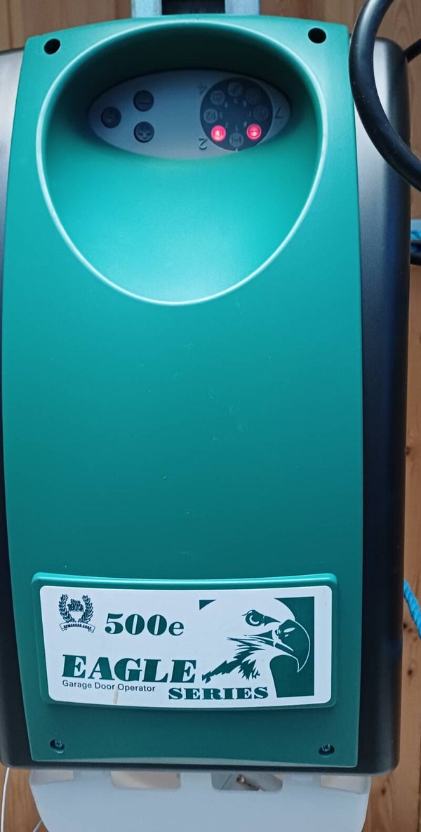 2 kanals radiosender fra New England Door som passer deres portåpner modell: 500eX og 700eX. Leveres med veggfeste og solskjerm feste.