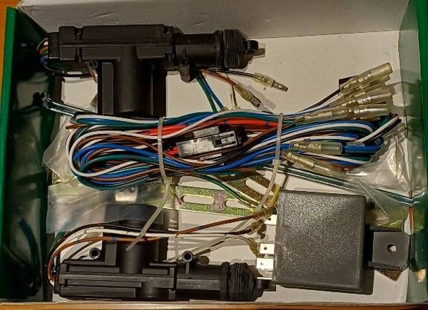 Pakke med 2 stk. elmotorer inkl. styringsenhet og kabler for el. åpning av fremre dører på bil. 12V DC. Ekstra motor for bakdør: se 89.960